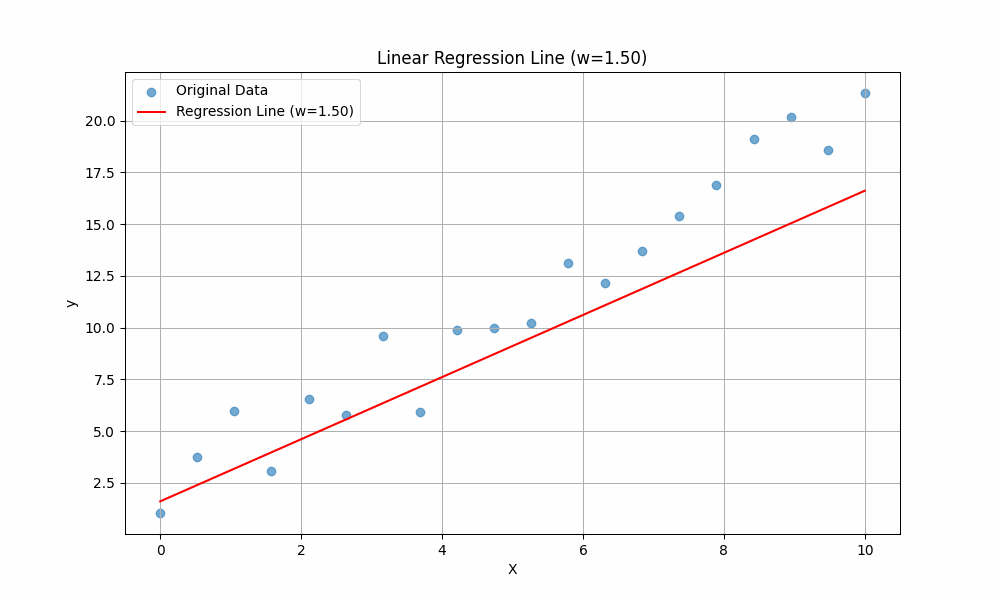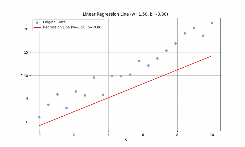 - \(w\) (weight): Controls the angle or steepness of the line (the relationship strength between \(x\) and \(y\)).