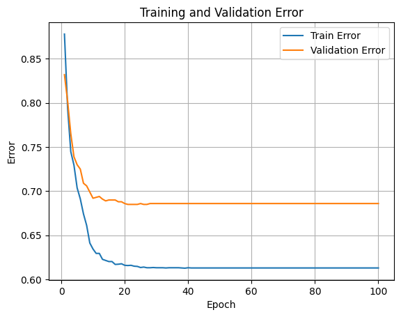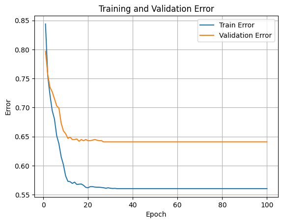 Epoch 100/100 - Train Loss: 1.6153, Train Error: 0.6130, Val Loss: 0.0427, Val Error: 0.6860
